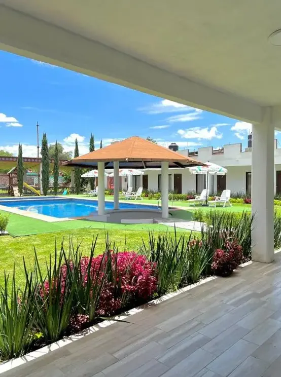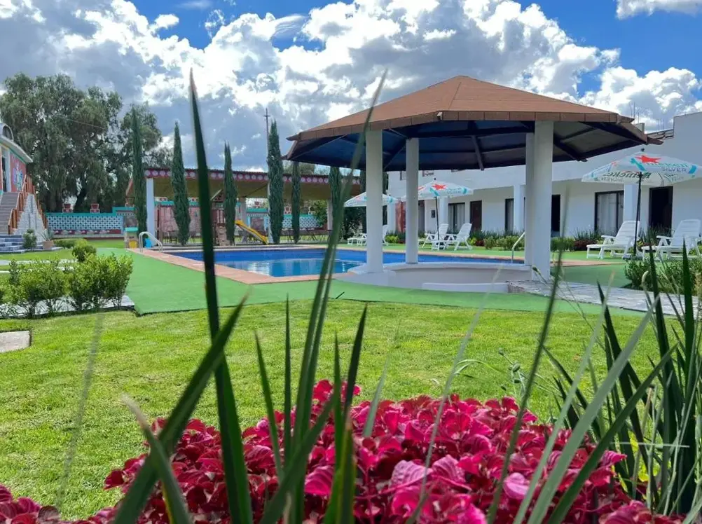Hotel El Jaguar se encuentra situado en Av. Periferico, 208, 55850 San Martín de las Pirámides, México. Este establecimiento ofrece una amplia gama de servicios para garantizar una estancia cómoda y satisfactoria. Entre sus instalaciones destacan dos piscinas, un restaurante y un bar, así como opciones de alojamiento que incluyen habitaciones familiares y habitaciones no fumadoras. Los huéspedes pueden disfrutar del desayuno excelente y del servicio en la habitación disponible. Además, cuenta con aparcamiento gratuito y conexión a internet gratuita. La ubicación estratégica del Hotel El Jaguar lo convierte en una opción ideal tanto para turistas como para viajeros de negocios, ya que se encuentra muy cercano a lugares emblemáticos como las Pirámides de Teotihuacán, a solo 1 kilómetro de distancia.